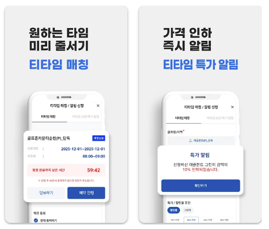 이 앱은 단순 예약 기능을 넘어 실시간 티타임 확인, 가격 비교, 특가 알림 등 다양한 스마트 기능을 제공하여 사용자 편의를 높였습니다. 또한 국내뿐 아니라 해외 골프 투어 예약까지 가능해 골프 여행을 계획하는 분들에게도 유용한 서비스입니다.