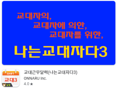 - 구글 플레이 스토어: “교대근무달력(나는교대자다3)”로 검색 후 설치 가능합니다.