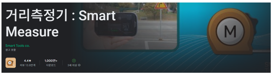 - 구글 플레이 스토어: 앱 설치는 Google Play 스토어에서 “거리측정기 : Smart Measure”를 검색한 후 설치 버튼을 눌러 진행합니다.