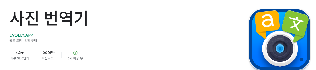 사진 번역기는 이미지 OCR 기능을 중심으로 사진 속 텍스트를 추출하고 번역하는 데 특화된 어플입니다. 텍스트 인식 정확도를 강조한 구조로 문서 이미지 번역에 적합합니다.